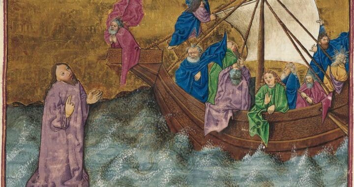 Picture: Ottheinrich Bible 1430 (II:27), Jesus Walks on the Sea in Mark 6:45-52